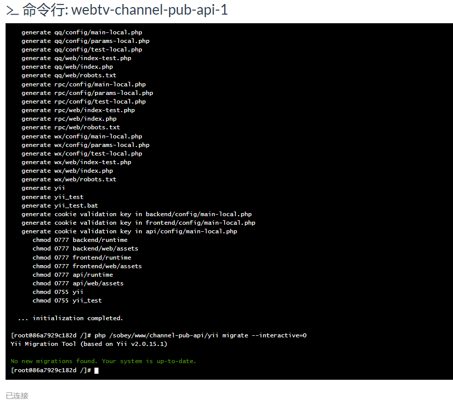php /sobey/www/channel-pub-api/init --env=Development --overwrite=All php /sobey/www/channel-pub-api/yii migrate --interactive=0