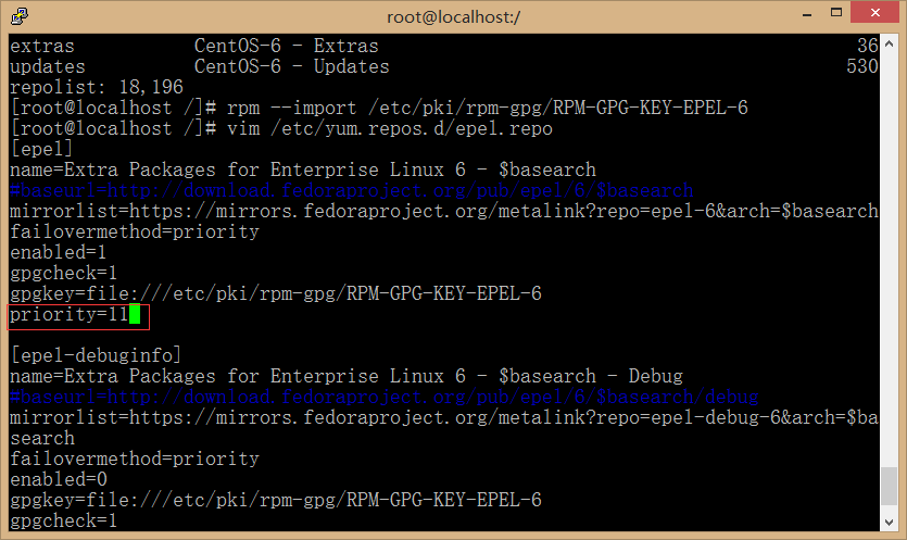 ![在[epel]块的最后一行添加一条属性 priority=11](http://www.shuijingwanwq.com/wp-content/uploads/2014/12/21.png)