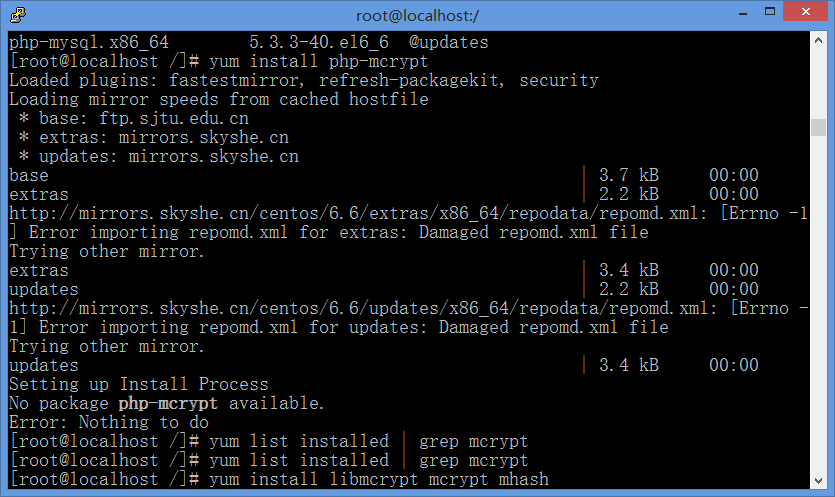 yum install libmcrypt libmcrypt-devel mcrypt mhash