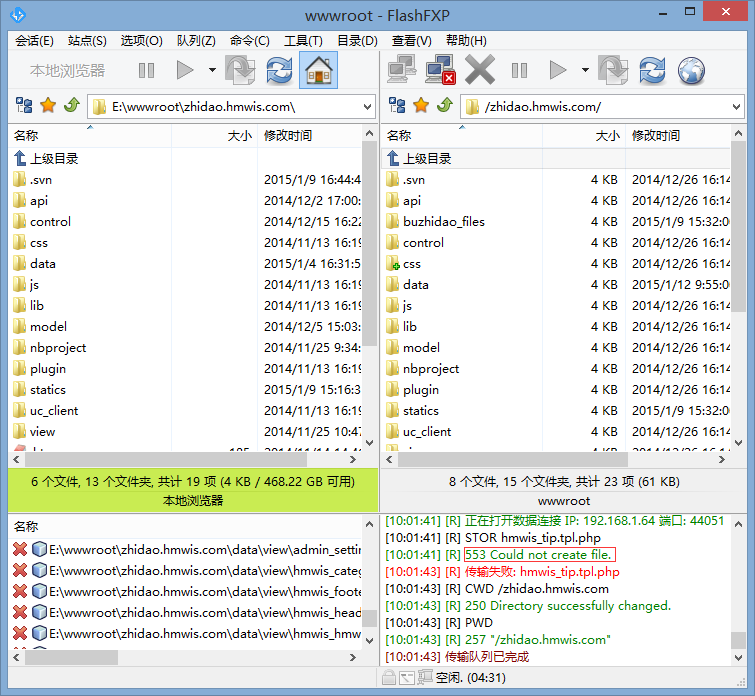 CentOS下vsftp通过FlashFXP 5上传文件出现:553 could not creat file的解决!