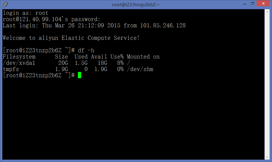 命令查看,出现以下信息就说明挂载成功,可以开始使用新的分区了。