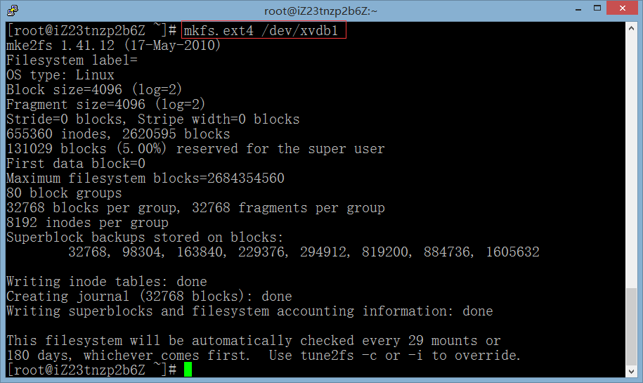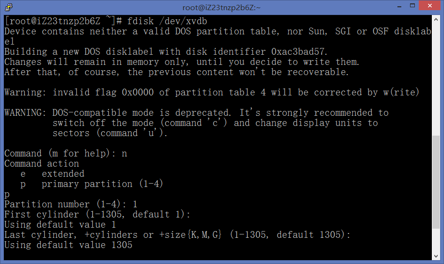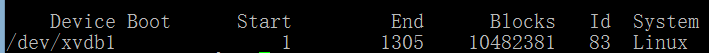 命令可以看到,新的分区xvdb1已经建立完成了。