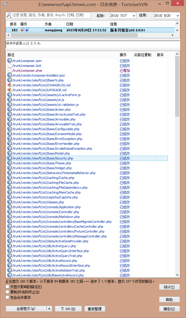 Yii2 版本从2.0.4升级至2.0.6的实现流程;
