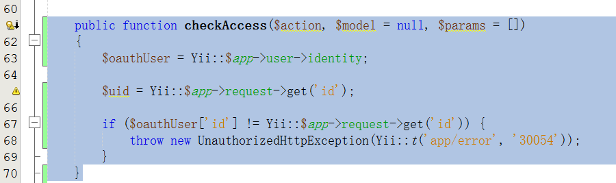 if ($oauthUser[‘id’] != Yii::$app->request->get(‘id’)) {