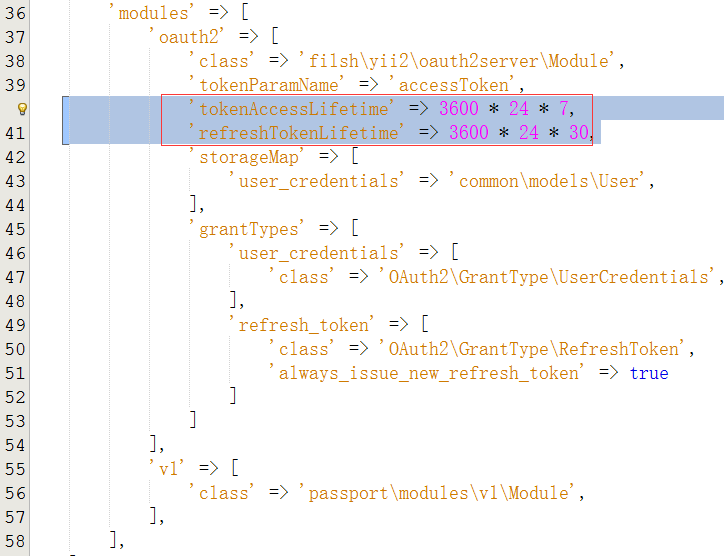 ‘refresh_token_table’ => \Yii::$app->db->tablePrefix . ‘oauth_refresh_tokens’,