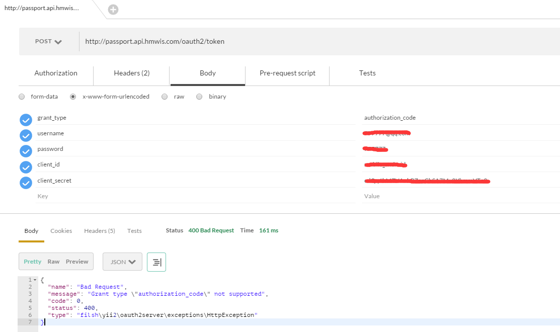 “type”: “filsh\yii2\oauth2server\exceptions\HttpException”