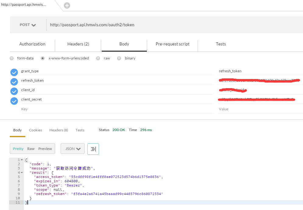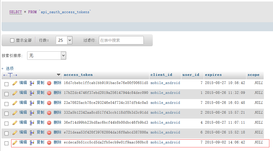 15.1、获取访问令牌成功,且在数据库中进行确认: