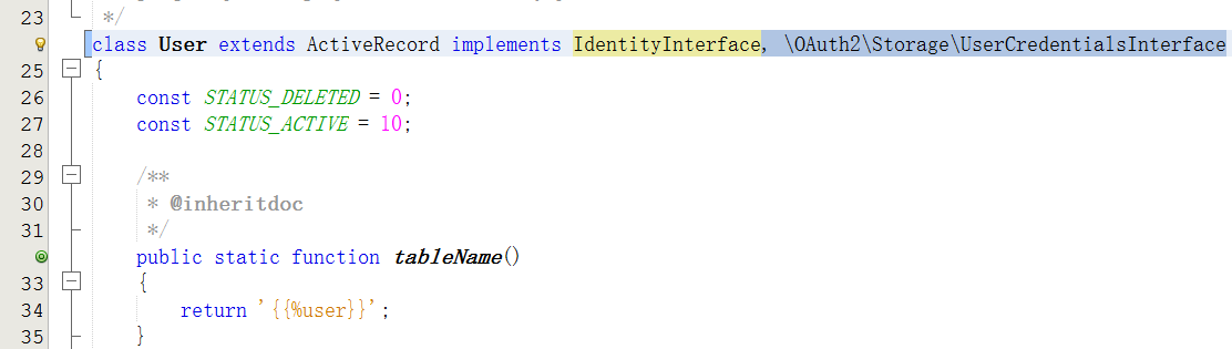 class User extends ActiveRecord implements IdentityInterface, \OAuth2\Storage\UserCredentialsInterface