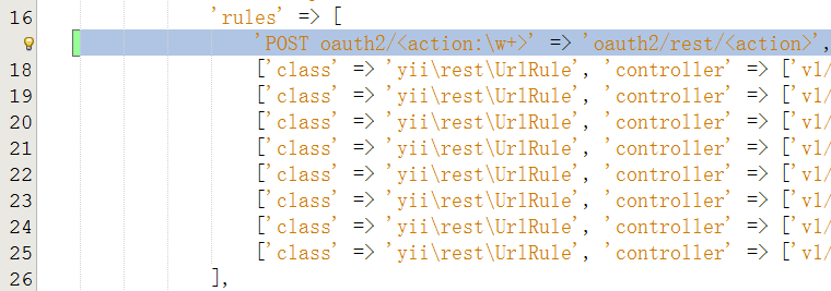 ‘POST oauth2/<action:\w+>’ => ‘oauth2/rest/<action>’,