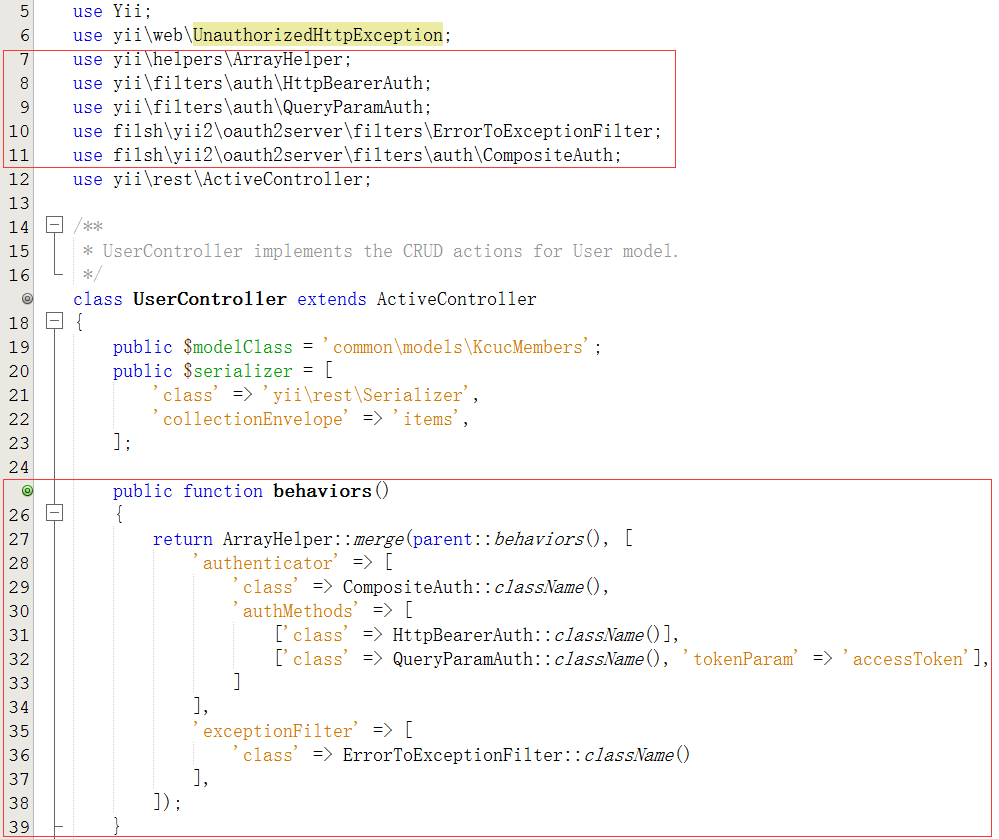 8、要使用该扩展,只需添加行为到您的基本控制器:
