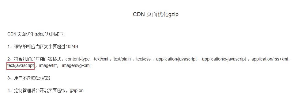 4、CDN页面优化gzip支持格式中包含text/javascript