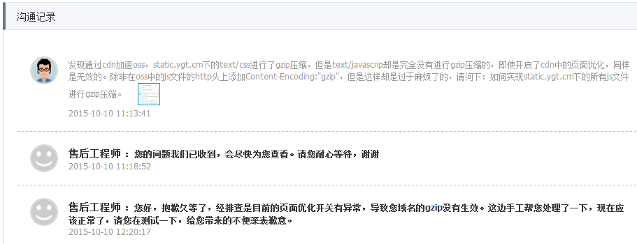 5、提交工单,经排查是目前的页面优化开关有异常,导致域名下的gzip没有生效,然后手工帮处理了一下