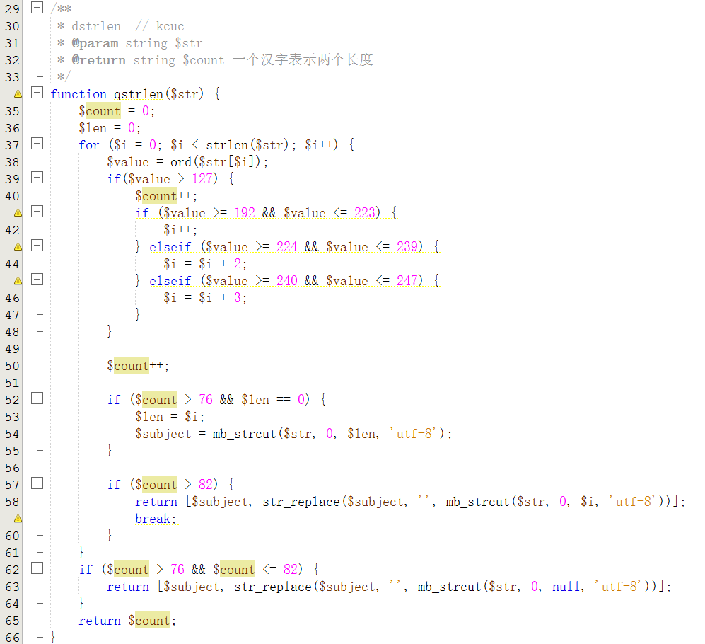 3、代码截图如下(一个汉字表示2个长度,因此38需要乘以2,且“要两手”为3个汉字的长度,因此在函数中长度为6):