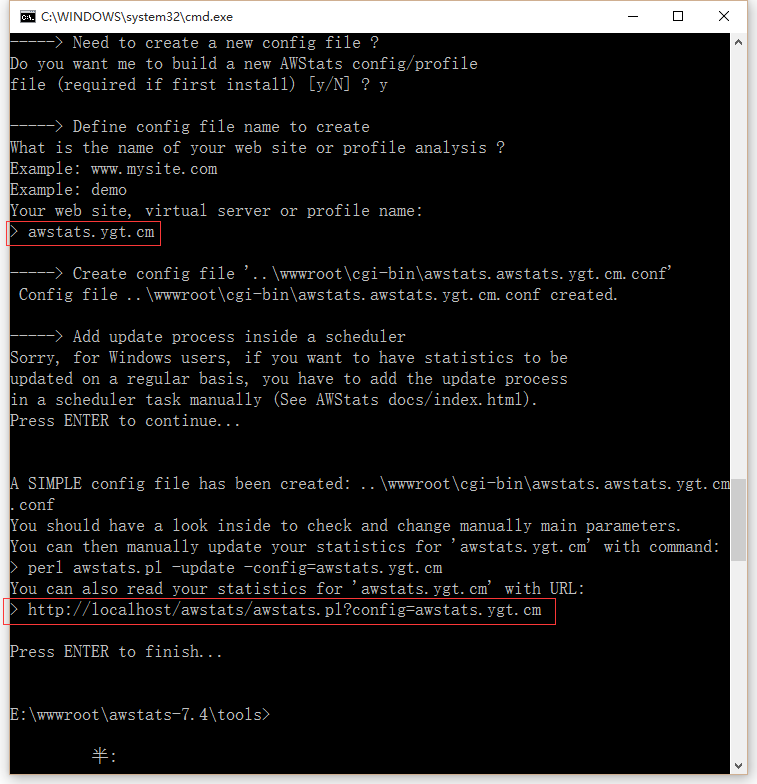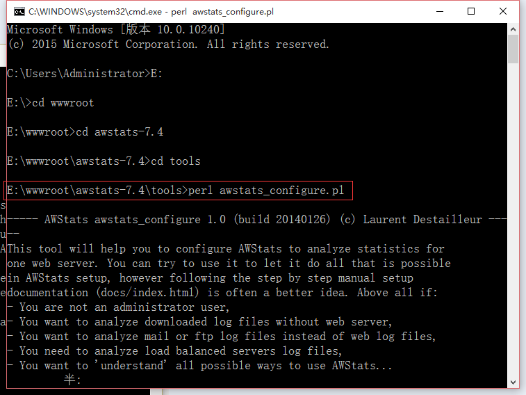 9、运行:E:\wwwroot\awstats-7.4\tools>perl awstats_configure.pl