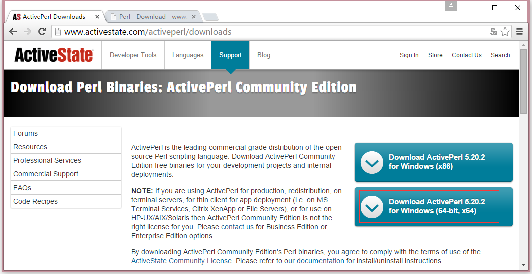 3、打开:http://www.activestate.com/activeperl/downloads ,如图2,下载64位版本;