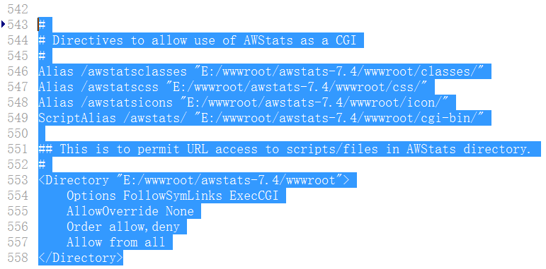 <Directory “E:/wwwroot/awstats-7.4/wwwroot”>