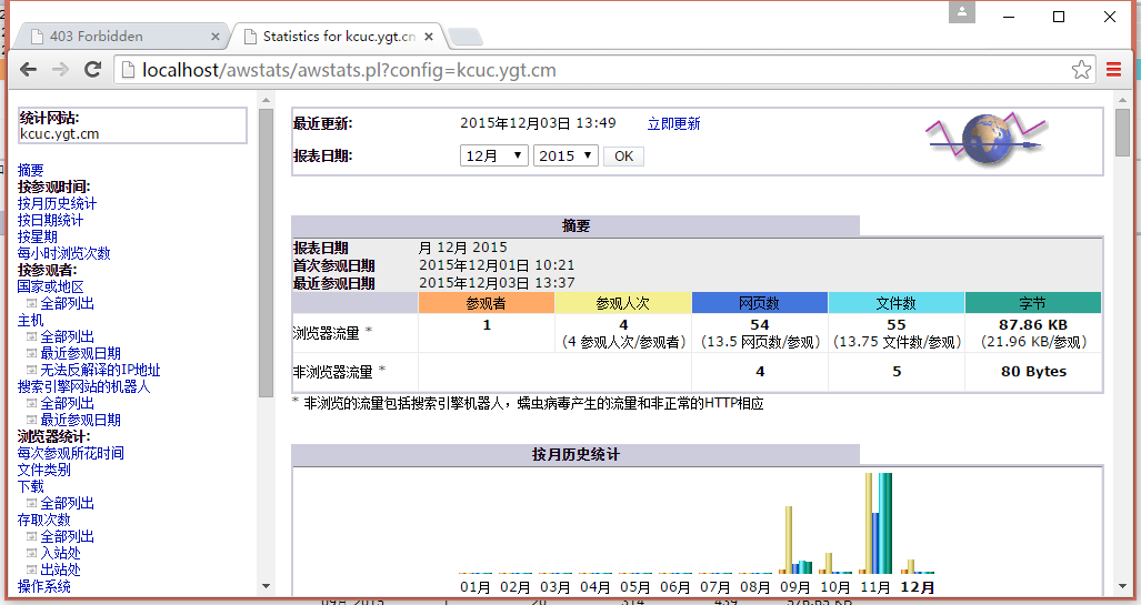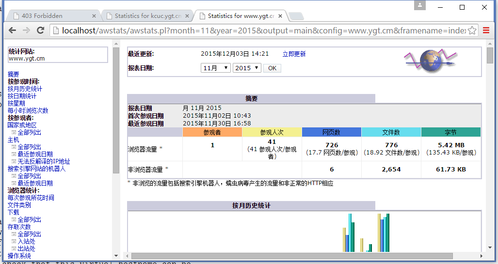 14、打开:http://localhost/awstats/awstats.pl?config=kcuc.ygt.cm ,如图