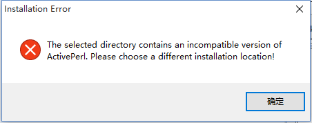 6、安装过程中,报错:The selected dirctory contains an incompatible version of ActivePerl,Please choose a different installation location!