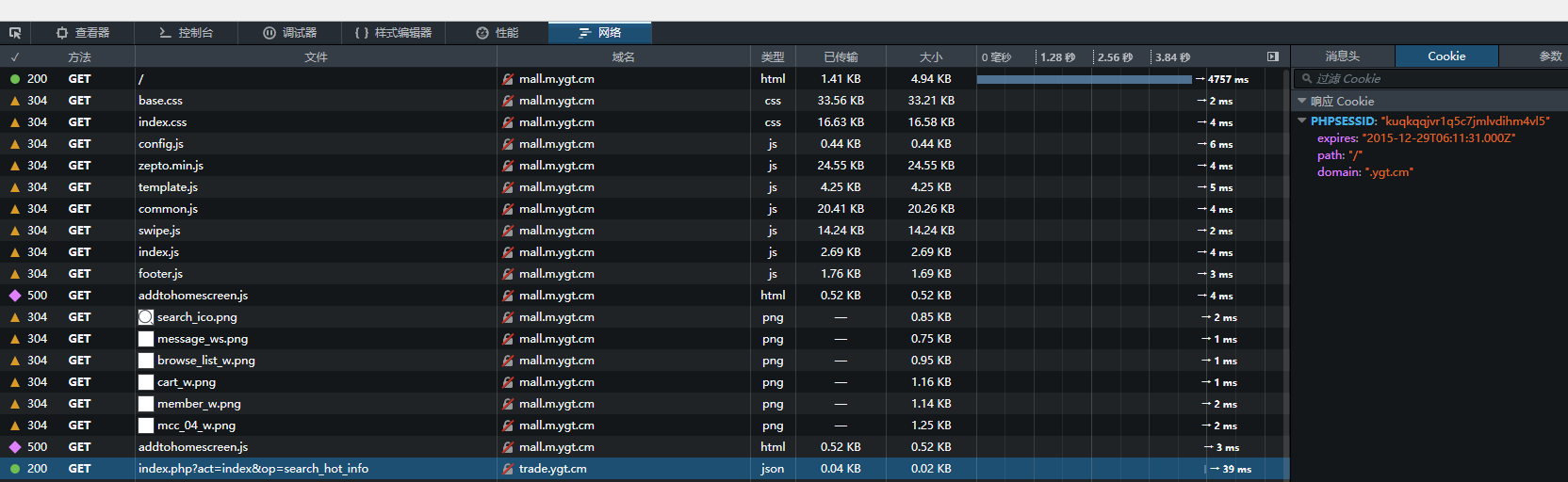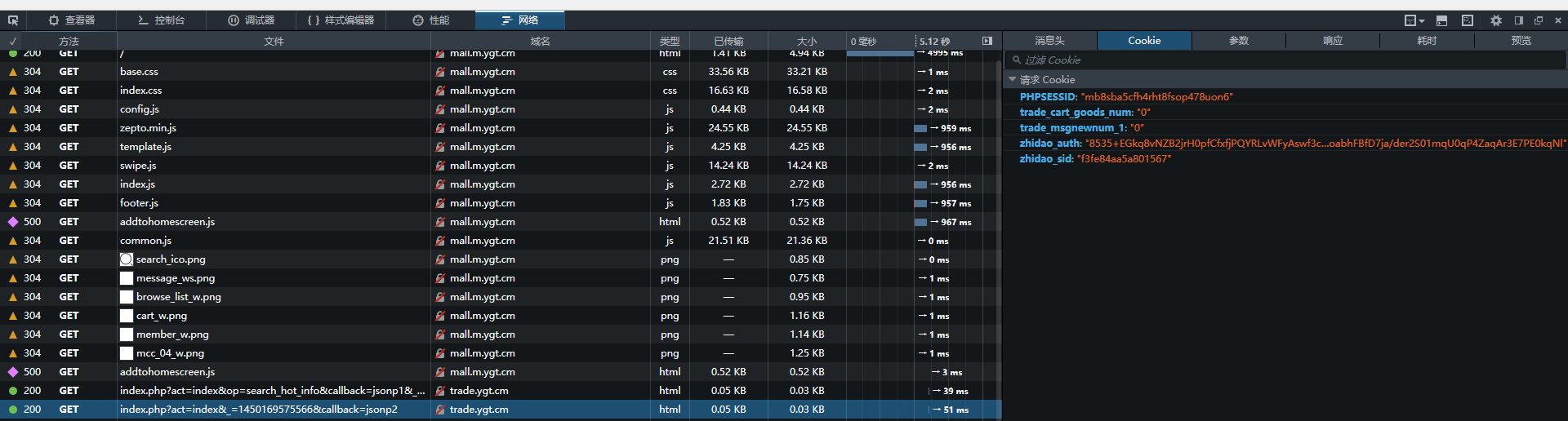 在ShopNC中将$config[‘wap_site_url’]=’http://mall.m.ygt.cm’;,导致ajax请求跨域的实现(get、post),在请求头中实现Cookie的流程
