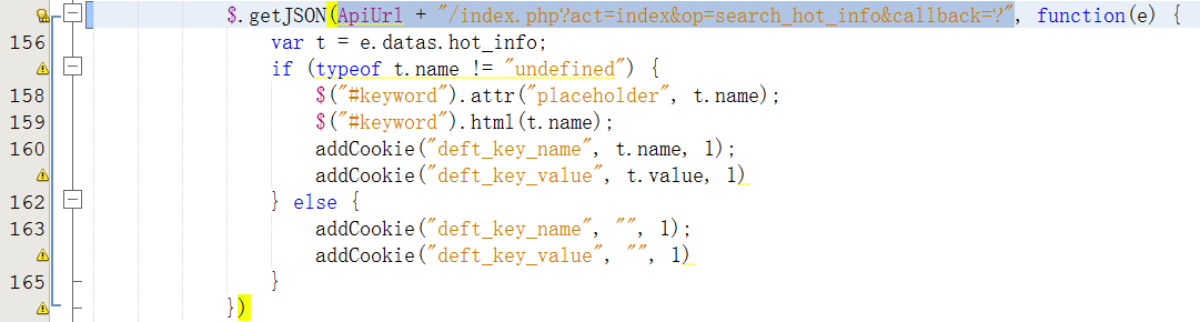 3、在$.getJSON的请求地址中添加:&callback=?,相当于设置请求格式为jsonp,如图1.2