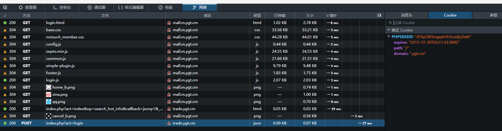 12、js中document.cookie的代码实现:domain=.ygt.cm; 如图2.7