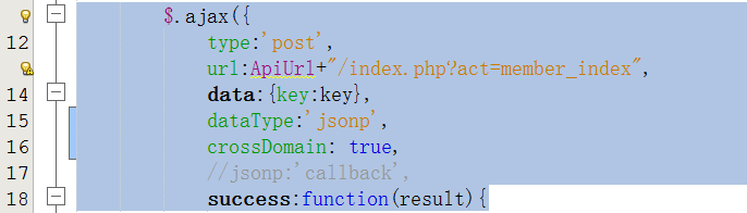13、$.ajax下的post请求,代码如图3.0,格式为jsonp;其实也可以采用与$.ajax下的post请求一致的处理方案,采用格式json,再设置xhrFields