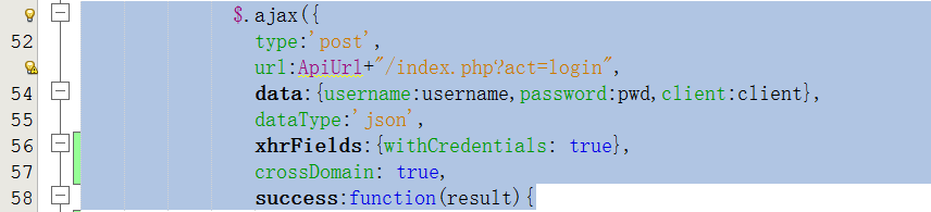 9、js代码实现:dataType:’json’,xhrFields:{withCredentials:true},crossDomain: true,如图2.4
