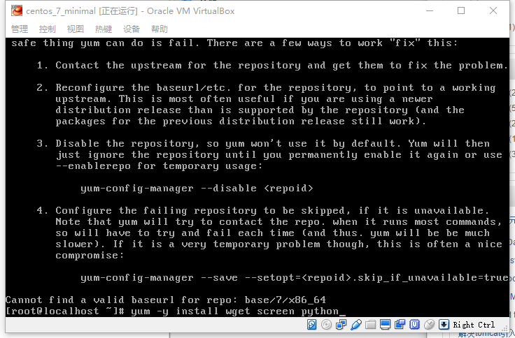 2、执行命令,如图1,报错,提示yum执行失败,下列方法可以解决: