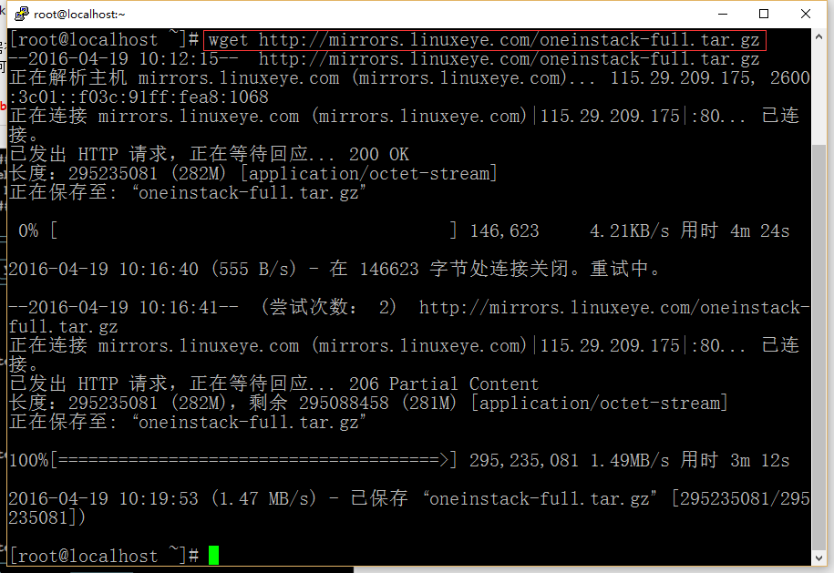 10、wget http://mirrors.linuxeye.com/oneinstack-full.tar.gz #包含源码,国内外均可下载,如图11: