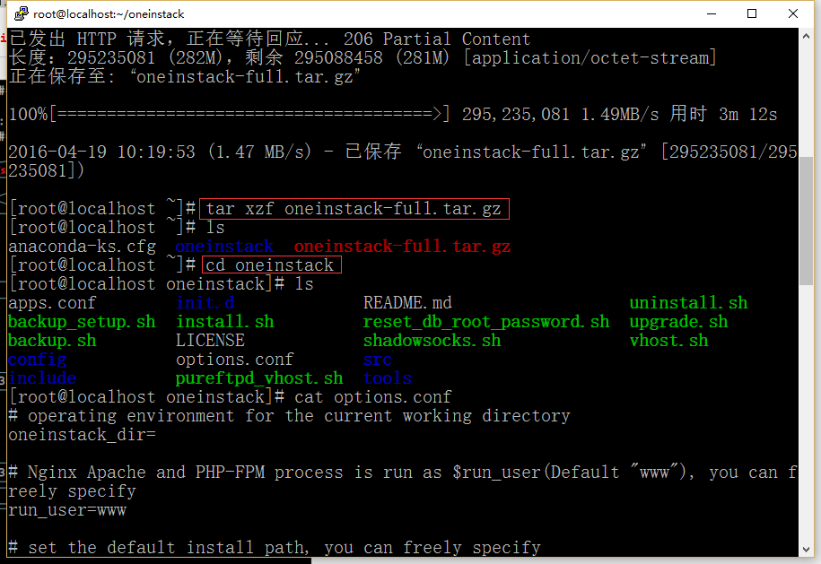 cd oneinstack #如果需要修改目录(安装、数据存储、Nginx日志),请修改options.conf文件