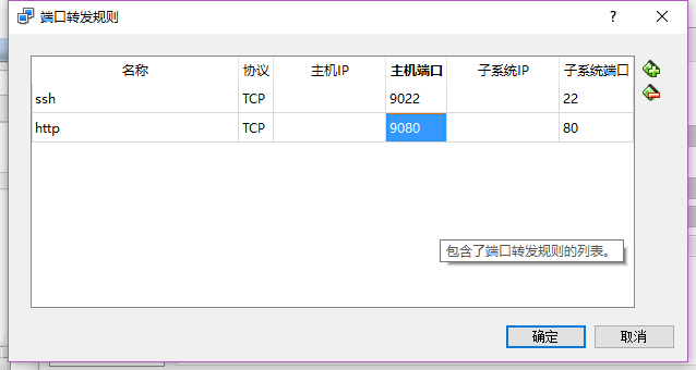 7、设置 VirtualBox 中的 CentOS 7 网络的端口转发规则,如图7: