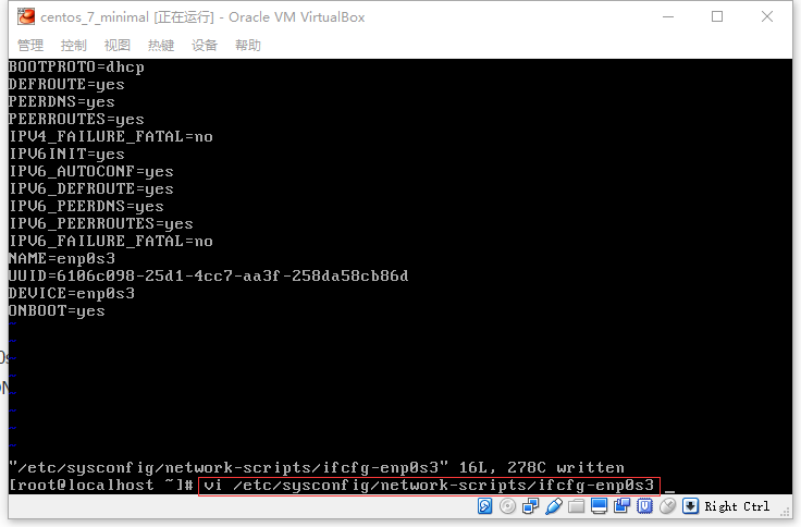 vi /etc/sysconfig/network-scripts/ifcfg-enp0s3