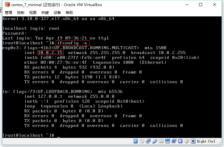 6、执行命令,查看当前虚拟电脑的IP地址,如图6: