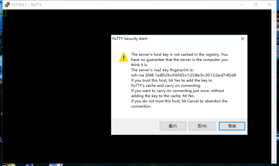 8、准备直接通过 Windwos 10 上的 putty,直接连接,如图8: