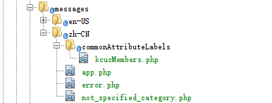 4、新建\common\messages\zh-CN\commonAttributeLabels\kcucMembers.php、\common\messages\zh-CN\not_specified_category.php,如图4: