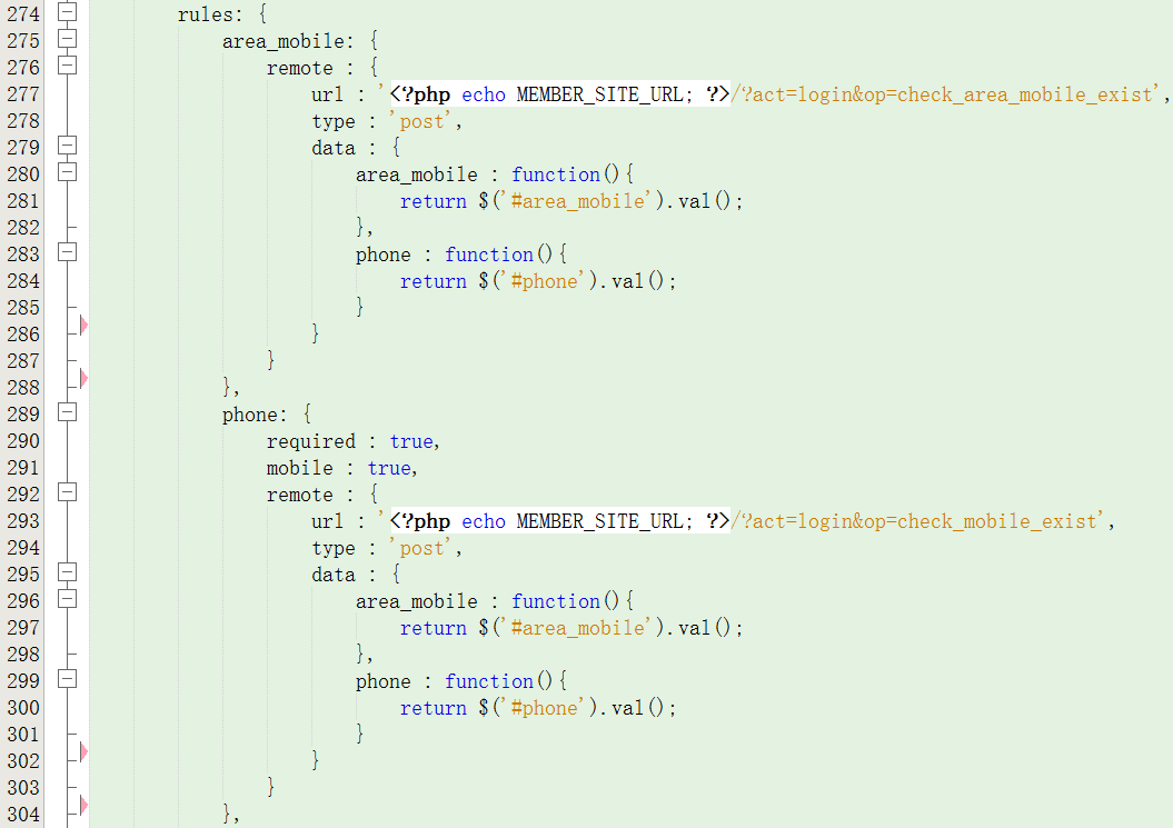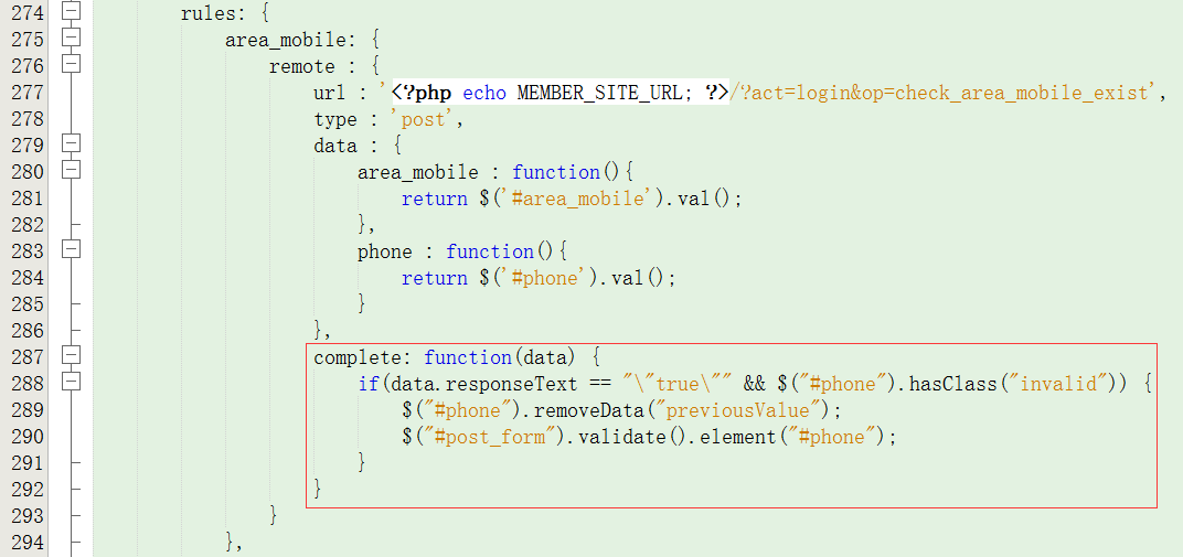 23、在phone处,如出一辙,只是当手机号码远程验证返回true而国家区号有错误的时候,则清除掉国家区号以前的值,再次执行国家区号的远程验证,如图27: