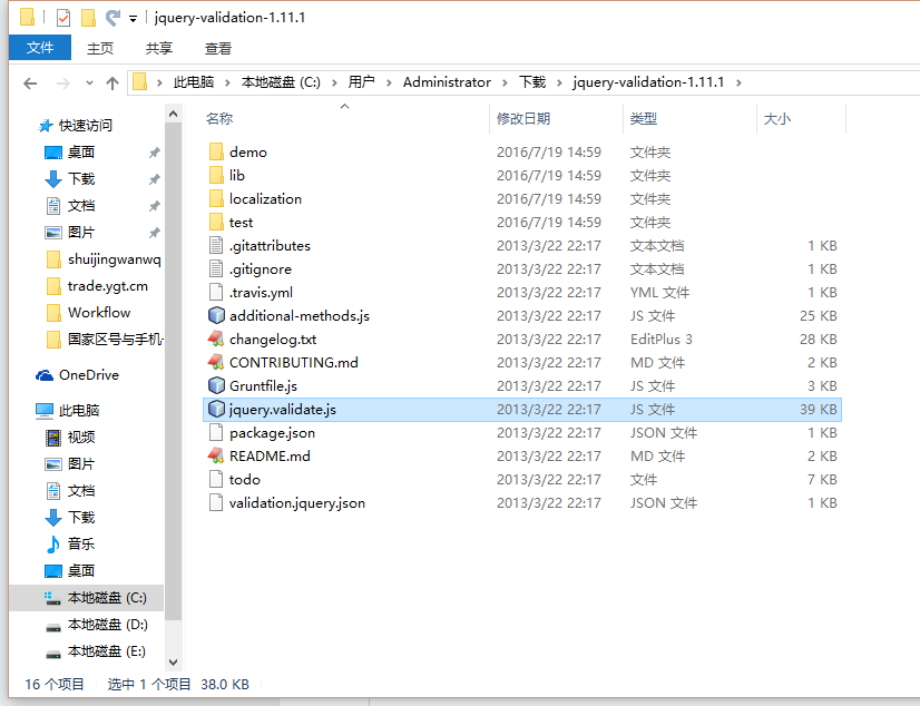 10、解压缩之后,复制jquery.validate.js至网站资源对应目录,如图12、13: