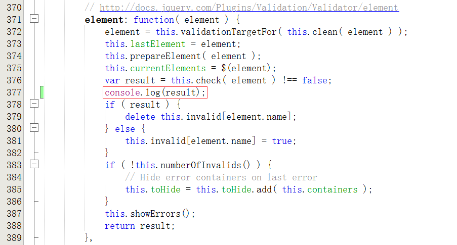 19、继续执行第2、3步,查看Console,可以确定当执行手机号码的远程验证的时候,因为value值与previous.old完全相等,所以返回false,进而导致手机号码的远程验证没有执行,如图22: