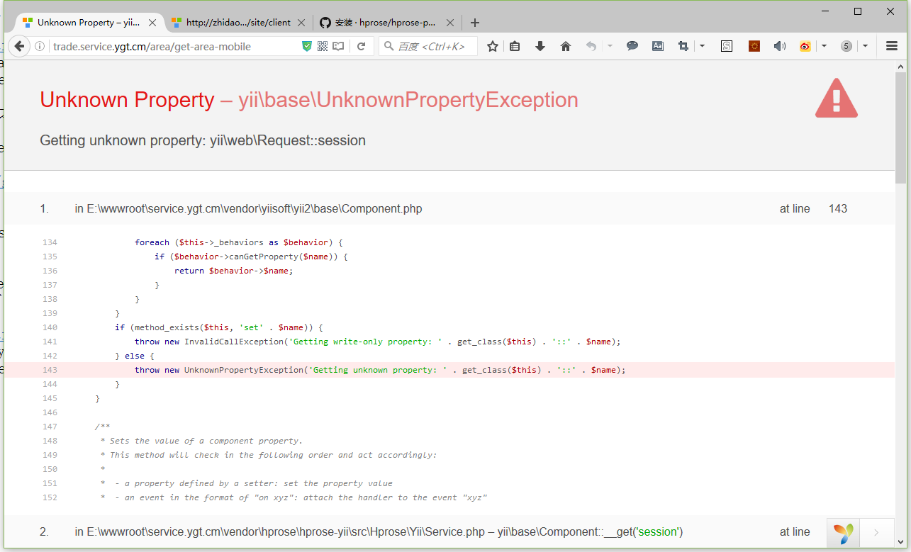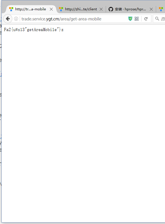 3、打开网址:http://trade.service.ygt.cm/area/get-area-mobile ,报错,如图2: