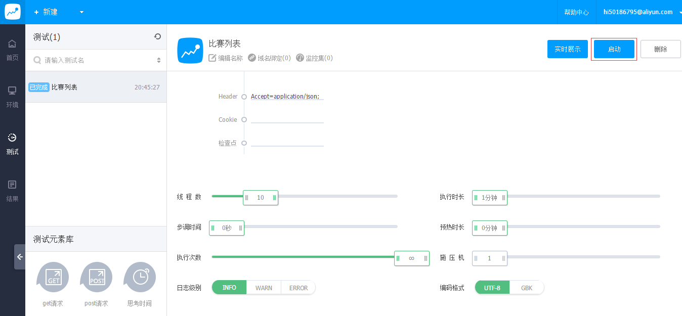 11、执行并发请求测试,设置线程数为10,如图12、13