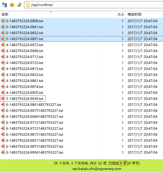 12、查看\api\runtime目录下所生成的文件,以0、4、6开头的文件数量皆为9,以5开头的文件数量为1,正常,如图14