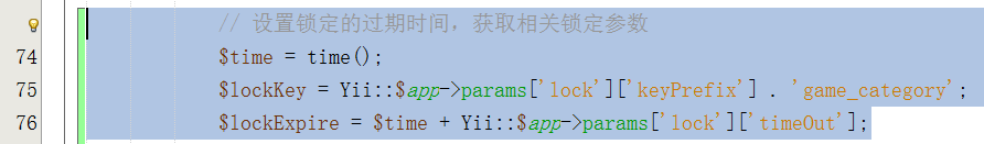 $lockExpire = $time + Yii::$app->params['lock']['timeOut'];