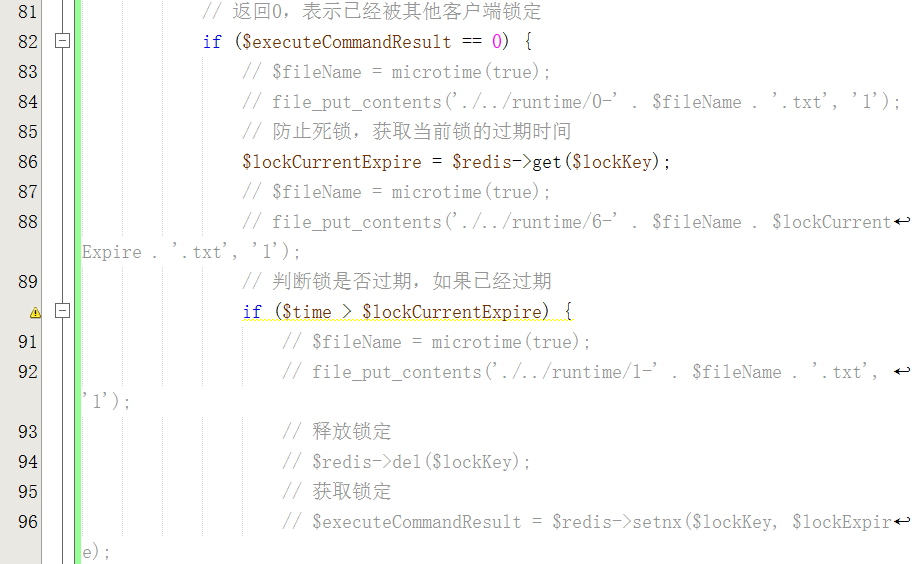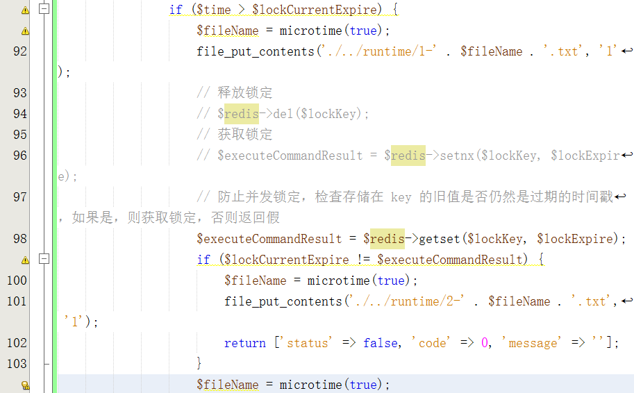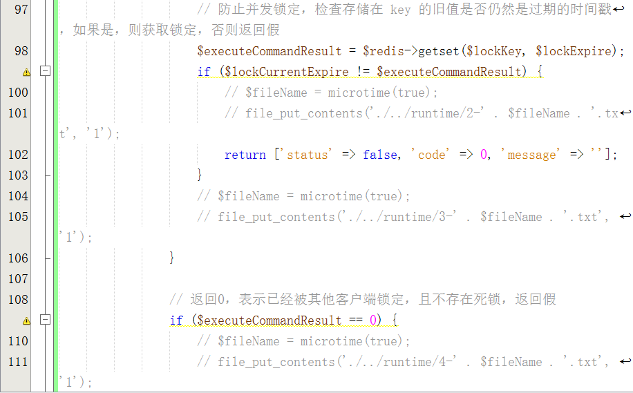 9、在判断锁是否过期,如果已经过期,这处代码段中,采用第一种算法,且将file_put_contents全部取消注释,如图10