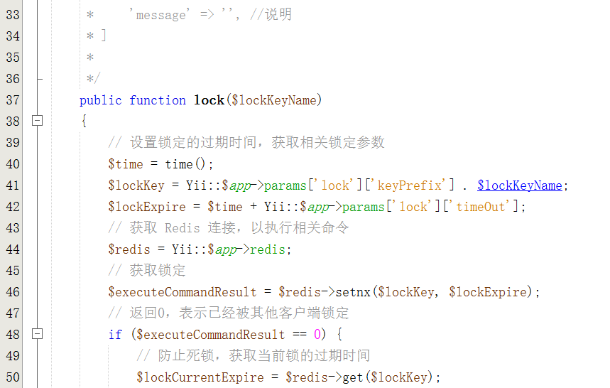 20、将获取锁定与释放锁定抽象为一个类文件,\common\models\redis\Lock.php,如图23、24