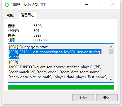 在使用 Navicat 12 for MySQL,运行 SQL 文件时,报错:[ERR] 2013 – Lost connection to MySQL server during query 的解决
