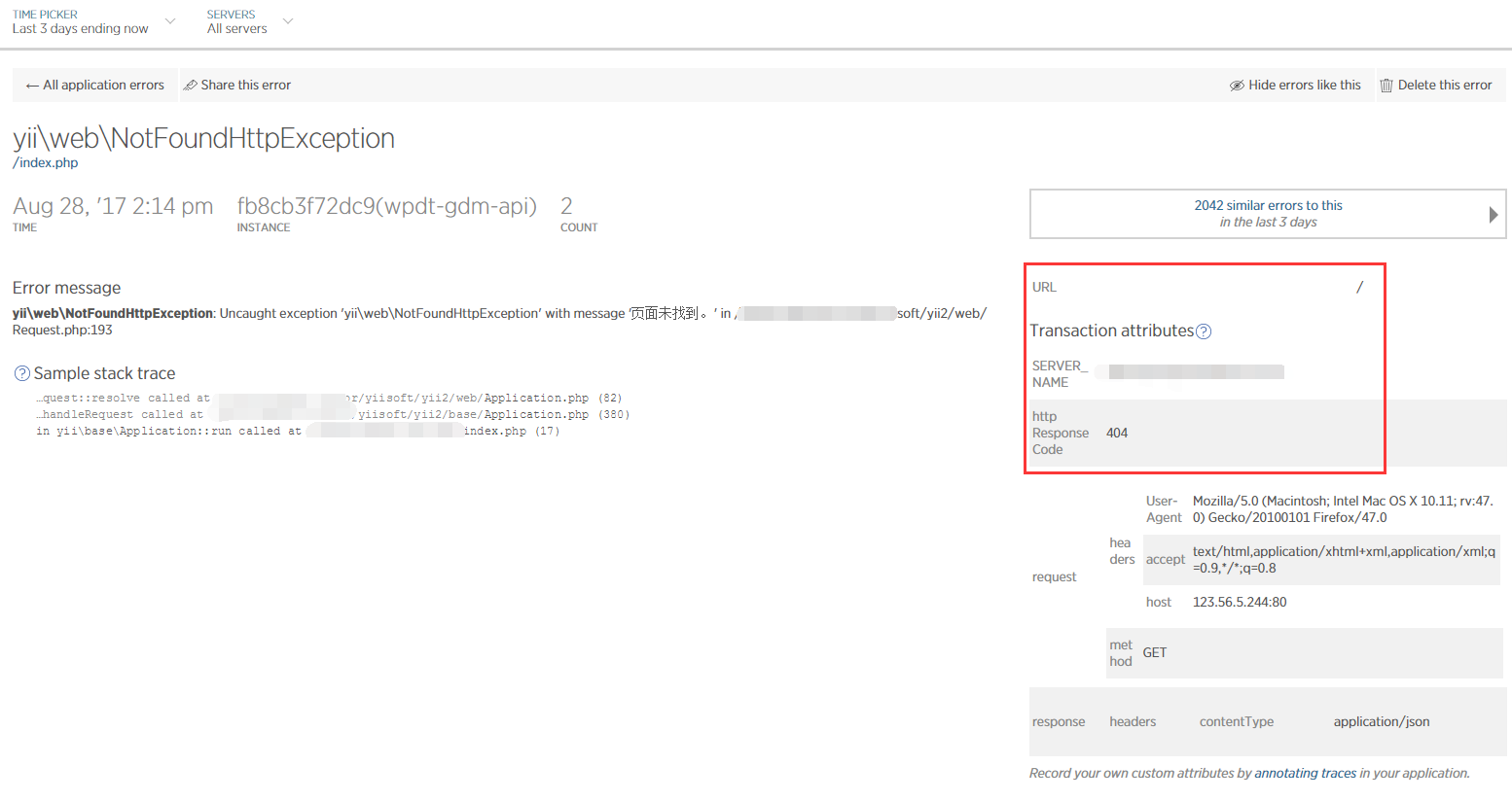 1、在 APM 监控中,由于阿里云的 GET URL / 请求,导致大量的404响应,对于运维的工作有一定的干扰,如图1
