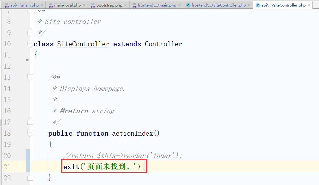 3、当请求被解析为空路由时,将使用所谓的默认路由。为何没有路由至 ‘site/index’,原因在于配置文件中启用了严格请求解析,如图3