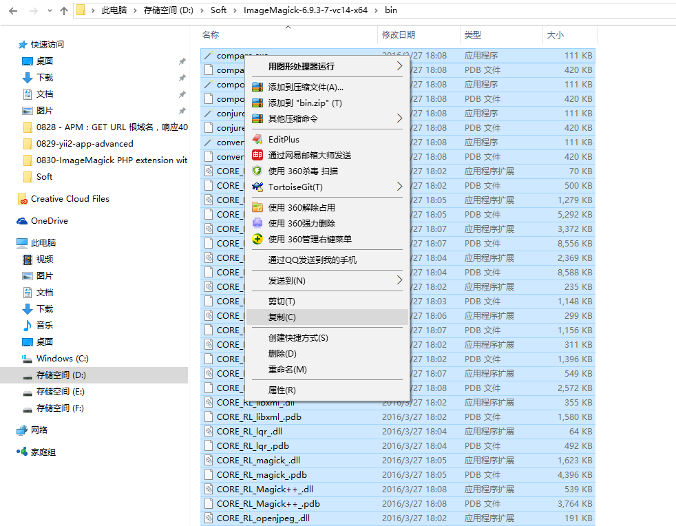 10、复制目录:D:\Soft\ImageMagick-6.9.3-7-vc14-x64\bin 下的所有文件,如图10