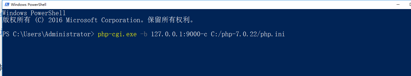 14、重启机器,运行:php-cgi.exe -b 127.0.0.1:9000-c C:/php-7.0.22/php.ini,正常,如图14