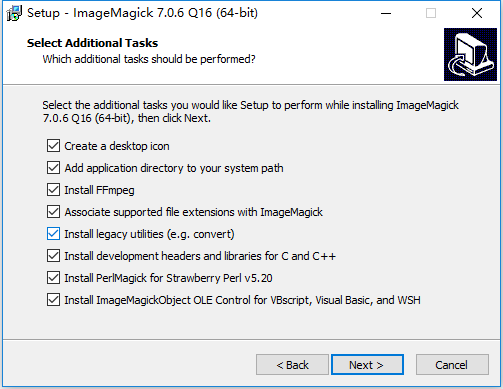 5、安装:ImageMagick-7.0.6-10-Q16-x64-dll.exe,全选,如图5